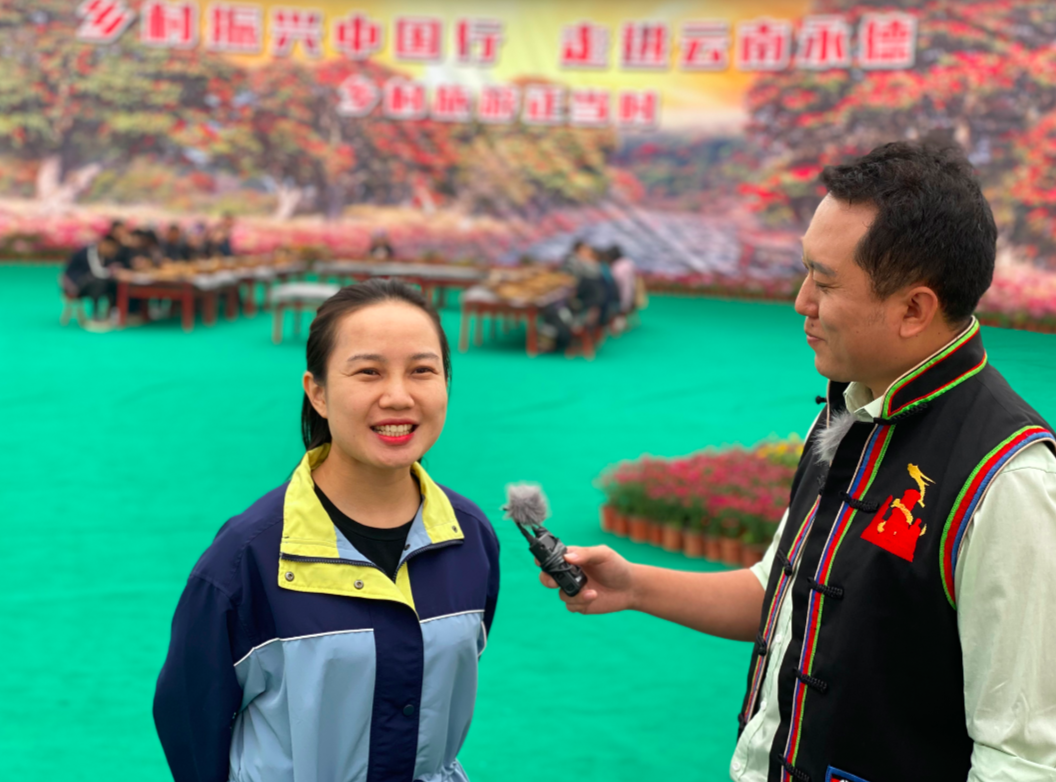 永德县旅游形象大使席文强,向观众推介永德农特产品。