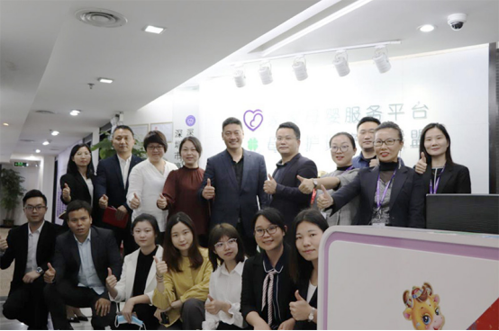 家家母婴集团副总裁丁一先生,家家母婴集团总裁助理暨深圳分公司总经理祝佳女士,家家母婴学院院长王红女士,家家母婴运营总监杨明先生,等热情接待了碧桂园区域社区服务事业部的考察交流团。