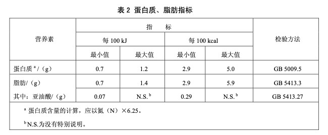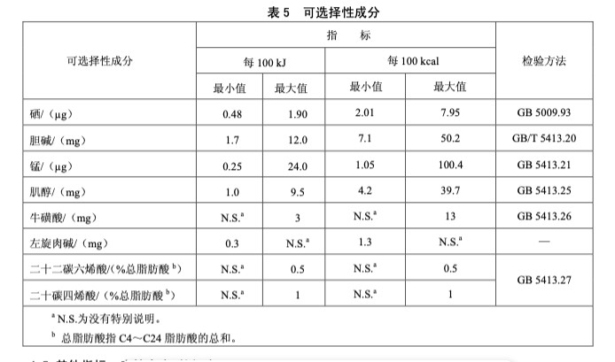 配方 其实通过配方注册的合格奶粉基础营养成分(必需成分)并没有太大差别,因为国标对于奶粉的基础配方有明确的规定,想要通过配方注册的奶粉其基础配方指标都要在国标规定的区间之内。这大概也是为什么会有“市面上的奶粉差不多,高价奶粉是智商税”等说法的原因。但除了基础配方(必需成分)奶粉还有可选择性成分与添加成分,这也是各品牌奶粉的最大区别点。以下附较大婴儿配方的国标,喜欢深扒的爸爸妈妈可以仔细看一下。