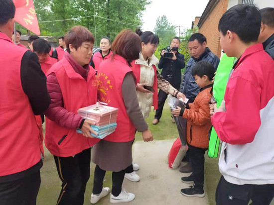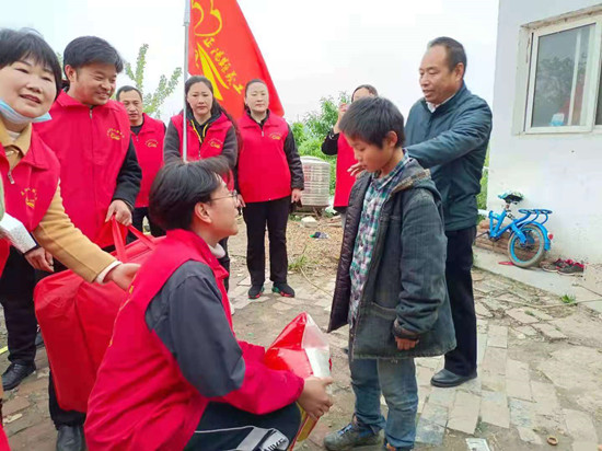4月25日主题党日,正阳县党群服务中心联合正阳县义工联合会的党员志愿者和爱心人士来到永兴镇高庄村,走访慰问留守儿童。