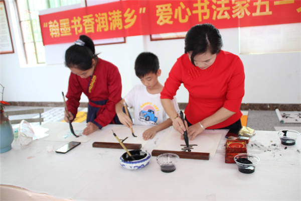 活动现场 张春梅/摄影 此次活动由界牌坡乡贤书画艺术家覃勇老师发起,他是从界牌坡走出去的文化名人,专业从事书画教育事业,虽然长期在大城市工作,却常常心系家乡,时时关注界牌坡的建设与发展,经常回村看望乡亲们。当覃勇老师得知界牌坡被江南区列为江西镇首个文化教育旅游产业建设为主的新农村建设典型后,就利用闲暇时间挥毫泼墨,捐赠了一批书画作品装扮村里新建的党群文化服务中心。