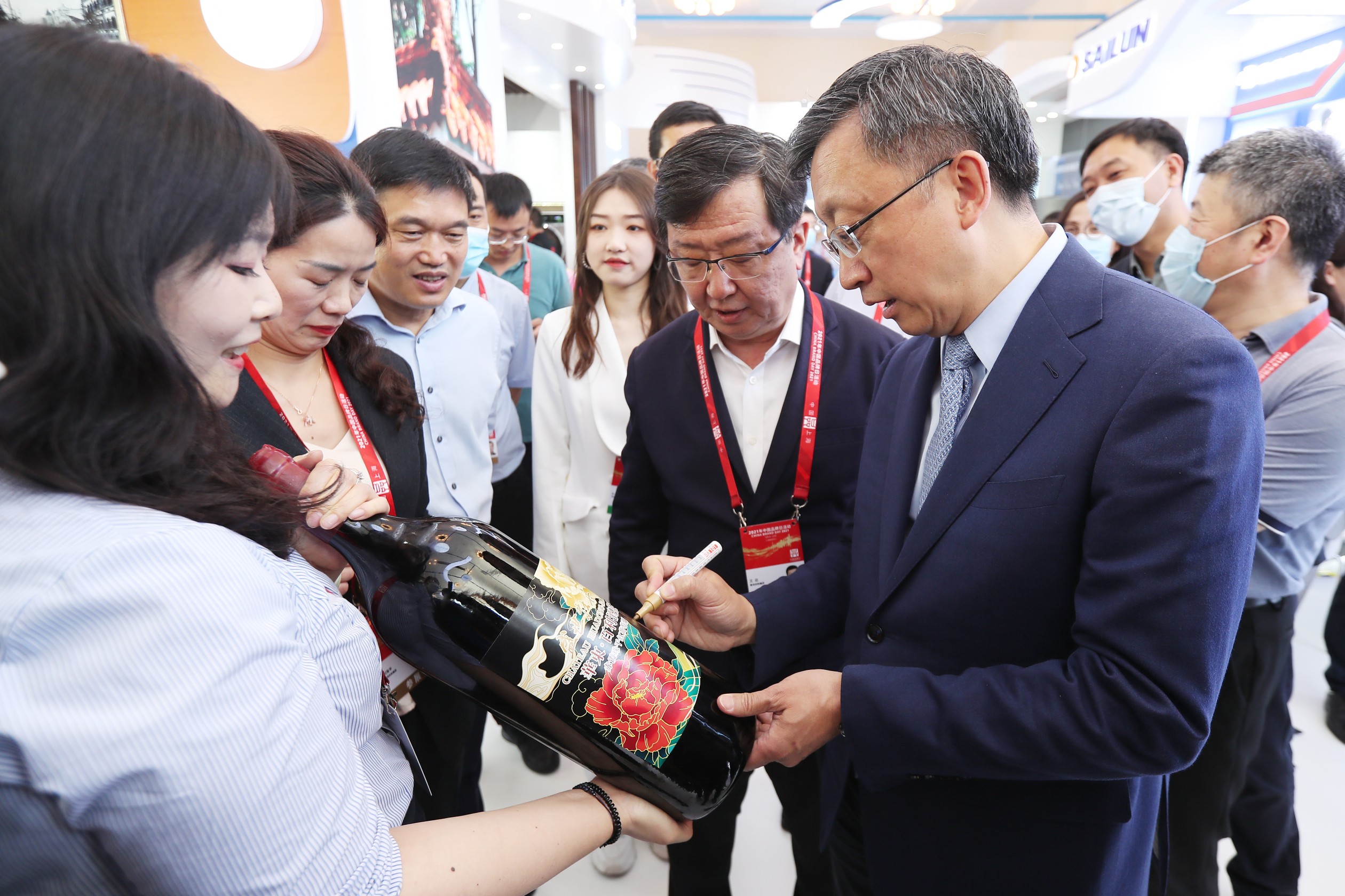 走进2021中国自主品牌博览会,青岛饮料集团的特色展厅给人柔美绚丽之感:崂矿经典红色打底,配上盛放的牡丹花元素,再加入白花蛇草水经典绿色勾勒出的枝叶,一派枝繁叶茂景象,拉近了参展者的距离。进入产品展示区,可以看见这里站满了来自全国各地的领导、嘉宾与参会者。除了品味各类水产品、欣赏优美欢快的歌舞表演,他们的目光都聚焦在青饮集团所推出的新品“盛世牡丹”之上。