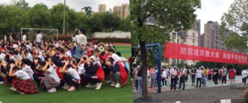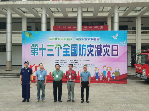 在全国第13个“防灾减灾”日来临之际, 5月11日上午,由九江经开区科技发展局防震减灾处、经开区自然资源局、经开区滨兴街道办事处联合举办的以“防范化解灾害风险,筑牢安全发展基础”为主题的防震减灾演练活动在兴中学校隆重举行。经开区党工委委员、副主任刘宏同志担任活动总指挥,区防震减灾处处长曹洪勇同志任副总指挥,滨兴街道办事处党工委书记柯晓明、兴中学校校长李世贵等陪同出席。经开区消防救援大队部分官兵及区医院部分医护人员参与救援演练,兴中学校部分师生及社区居民代表、党员代表、志愿者、辖区幼儿园师生等共计400余人参加了此次活动。 本次活动共分三个场景依次进行。分别是:应急逃生演练;消防急救、伤员救治;灭火救援。 上午10:10,随着一阵急促的警报声响起,300余名学生在老师们的指引下,按照紧急疏散要求,猫腰、护头、掩鼻等由既定逃生路线迅速撤离1号教学楼,到达1号避难场所(足球场);同时,辖区居民代表等100余人组成的逃生队伍亦按规范要求从3号楼迅速撤离到达2号避难场所(篮球场)。所有人完成逃生演练用时仅1分12秒。