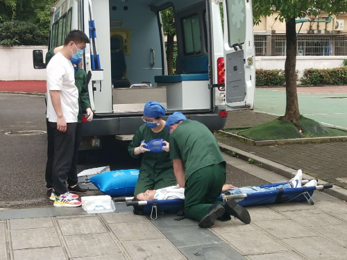 10:18,第二、第三场景演练依次进行。开发区医院医护人员现场演示了如何为伤员包扎伤口、徒手心肺复苏等急救方法,普及了急救知识及灾后卫生防疫知识。开发区消防救援大队人员进行了灭火演示,向师生们讲解不同场合、不同情况下避震逃生知识、逃生路线和就近选择避难场所,联合医护人员模拟营救高楼被困人员演练。