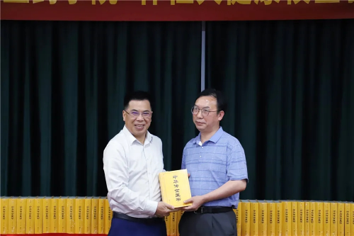 何清湖校长向林承雄董事长赠送一套珍贵传世医书