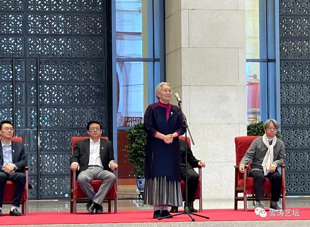 北京画院院长吴洪亮在开幕式上说: 非常高兴由中国国家博物馆、北京画院主办,王雪涛纪念馆协办的“生趣盎然——王雪涛艺术展”在中国国家博物馆顺利开幕。 王雪涛先生是20世纪中国美术史上卓有成就的花鸟画大家。他清新灵动、富有情趣的小写意花鸟画至今在中国画坛无出其右。他幼年喜好绘画,考入国立北京艺术专科学校,后转益多师,曾师从陈师曾、王梦白、陈半丁、萧谦中、柯罗多等。又拜入齐白石门下。齐白石曾赞誉其“蓝已青矣”。他六十年潜心研究花鸟画艺术,上溯宋元,涉猎明清,融汇中西,贯通古今,以革新的意识创作了大量画作,终于成为集大成者,独树一帜。 王雪涛先生在1955年北京画院建院之初,就参与了画院的筹建工作。1978年开始任北京画院院长,为画院的发展做出了巨大的贡献。本次展览中展出了珍藏于北京画院的多件王雪涛先生绘画作品,比较全面的体现了雪涛先生不同时期的艺术风格。2010年3月3日我们曾在北京画院举办过《墨海灵光——王雪涛花鸟精品回顾展》这个展览在当时具有相当的社会影响力。我们知道很多花鸟画学习者的入门就是从临摹王雪涛先生开始的。雪涛先生的绘画已经渗入到了百姓民间,成为了一种文化视觉的基因。 新中国成立以后,花鸟画如何服务大众成为了时代的课题。雪涛先生从50年代到80年代,通过不断的实践和探索,其绘画风格日臻找到了新中国的新面貌。这种探究与努力,对于如何重新看待20世纪花鸟画的发展,以及当下如何进行艺术创造,都具有非常重要的历史意义与时代价值。 最后我在这里衷心的感谢中国国家博物馆、济南市人民政府、王雪涛纪念馆、济南天下第一泉风景区服务中心,以及王雪涛先生家属的大力支持,共同促成了本次展览。再次感谢中国国家博物馆策展工作部的同仁为本次展览的筹备所做的辛勤工作。也感谢今天能够到场的所有热爱王雪涛艺术的人士 。
