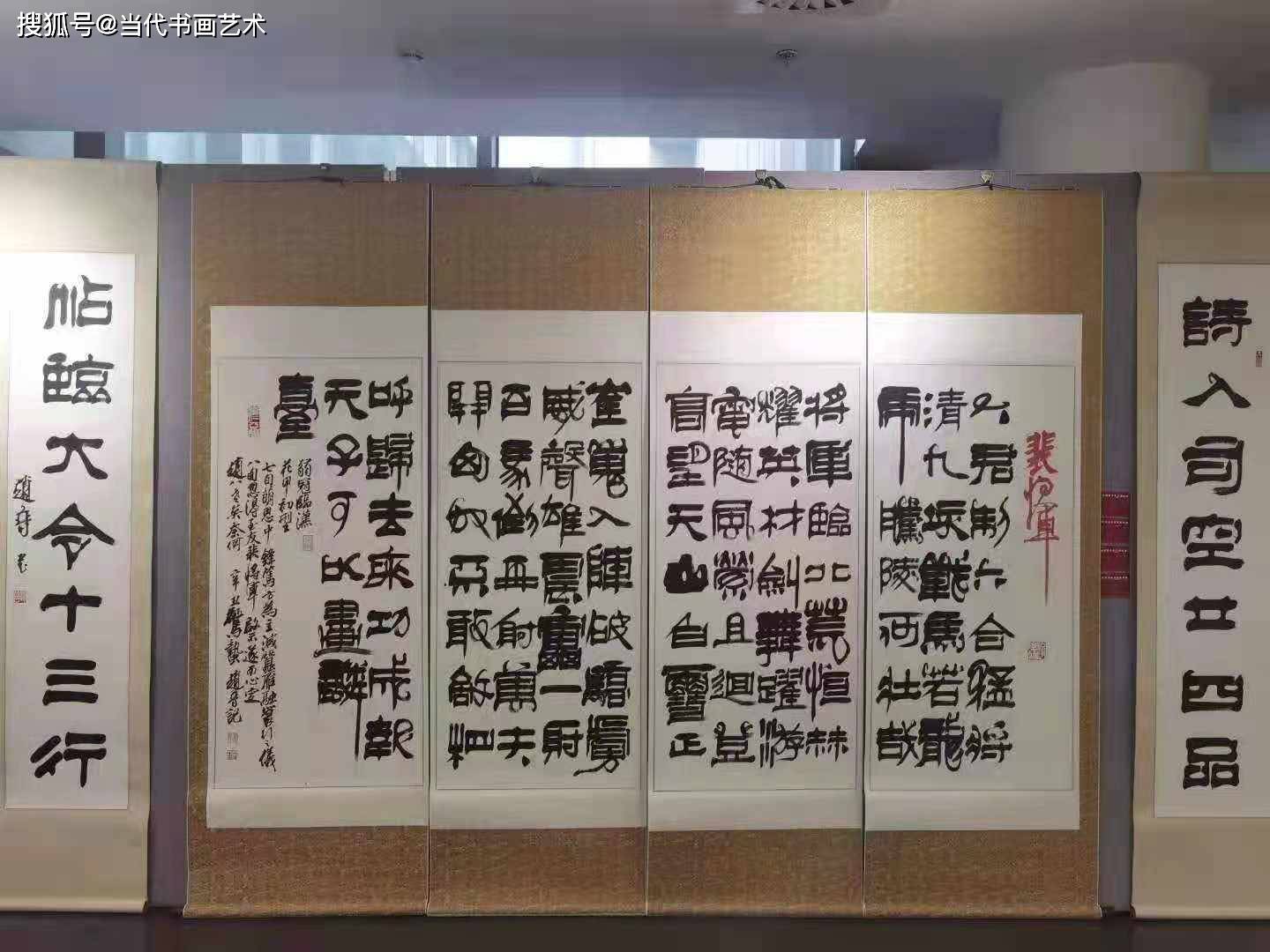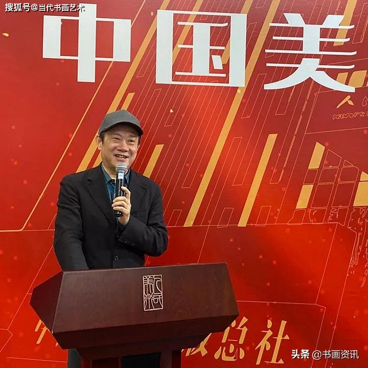 展览由田伯平先生担任主持:很荣幸能够出席此次展览,在这场群贤毕至、少长咸集艺术盛会中展出自己的书法作品。同时他表示,此次展览数量众多,在这些作品中,他深刻地体会到了美术工作者、艺术从业者对祖国的热爱之情、赞美之意。同时感受到了“笔墨当随时代”的具体实践,每一幅作品都代表着时代的声音,都是向伟大的祖国献礼,向中国的人民致敬。其中在看到作品《界碑》时他深深感叹,感叹边疆官兵的不易,感叹安定生活的不易。
