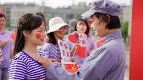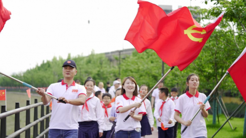 最后是以青年党员和少先队员为代表的第三方阵,他们表示要刻苦学习科学文化知识,练就过硬本领,以高度的责任感与担当精神投身学习中,将红色接力棒一棒棒延续好、传承好。