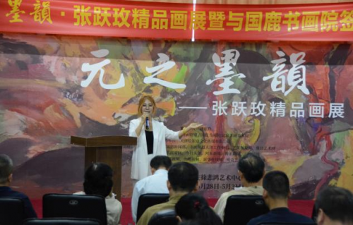 ——祝贺“元之墨韻”张跃玫精品画展开幕式暨与国鹿书画院签约仪式圆满成功! 出席本次活动的嘉宾有连辑:国鹿书画院名誉院长(原国家艺术研究院长,中国非遗文化中心主任),林仁堂:国家鹿产业创新联盟会长、国鹿书画院院长,关德仁:国鹿书画院常务副院长,牛坤:国鹿书画院,院长助理院办主任,邓玉生:国鹿书画院艺术部主任,西丰国鹿书画院院长,溥扬:爱新觉罗.满娘 著名画家,周文华:中国大海画院副院长、著名画家,邓弘:央视数字书画频道新闻编辑部主任,周连起:(男)央视数字书画频道天津工作中心主任等嘉宾; 著名主持人翟瑾主持本次活动!