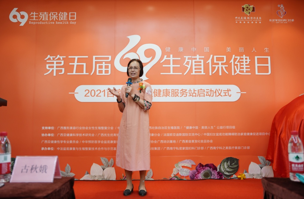 广西亚健康科学技术研究会创会会长:古秋娥教授 广西亚健康科学技术会会长古秋娥女士在致辞中,对69生殖保健日寄予很高的期望,在这几届的项目实施过程中也感受到了69对社会的影响力。近年来,69生殖保健日面向社会群体开展了丰富多彩的公益活动,这非常有利于提升全民对健康的关注度,并且希望本届成立的百家健康服务站能更好的为社会群众服务,呼吁大家要共同关注自身生殖健康,加强生殖健康保护意识,树立健康的生活观念。
