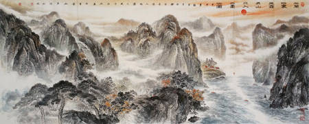 李叔平(述平) 字:金海. 号:江海.醉墨斋主, 墨林。笔名:观天 蒙太奇; 观云海 蒙太奇; 大泰山、 五岳独尊。 现为全国书画艺术委员会主席、中国国家书画院副院长、 中国工艺美术家协会副主席, 中国美术家协会会员、中国王羲之书画艺术研究院研究员、中国齐白石艺术研究院副院长、 “精忠墨庄’’ 书画研究院执行院长、香港特别行政区书画社社长、中国书画学会会员。国家高级美术师、国家一级美术师、中国国画家协会会员,《名家书画》杂志美术总编,原文化部文化艺术遗产保护中心专职画家。 自幼酷爱书画艺术,15岁师从当地国画名家张怀贞老师,主攻山水、虾、蟹。后又拜齐白石弟子:娄师白、刘永泰,1986年毕业于曲阜师范大学艺术系,经高冠华、梁树年等名师教导。1989年在徐州结识国画大师李可染教授,并得到亲笔指导;后师承雷正民先生(中国美术家协会书记处常务书记、中国国画家协会主席)。先后经过权希军、刘艺、邹德忠、王文芳、于志学、程振国、李柏洲等多位名家的指导。在艺术上外师造化, 中得心源,博采众长,自成一家。 1990年《江山雪韵》入选山东省美协主办的画展,获一等奖。 1992年《冬日冰封》入选中韩文化交流展,在韩国汉城展出。 1996年《少儿回忆-----家乡雪景》4幅组画入选中日韩新四国文化交流展。获专家与同行的一致好评。1997年《我美丽的家乡》入选中国美术家协会主办的画家作品展。 1999年绘制第五套人民币背面风景图案“泰山雄姿图” 2010年3月:经北京崇阳书画院职称评定审查委员会严格审定,加入北京崇阳书画院院士。 2010年9月:作品《苍松万年青》入选中韩名家书画作品展,被韩国国立博物馆收藏:入编作品名家画集。 2010年12月:加入中国国画家协会编号:2010-0-4693 2011年4月,成为中国国家书画院副院长,编号:ZG100322. 2012年6月1日,参加纪念胡乔木同志诞辰100周年座谈会在北京人民大会堂举行。 2013年,加入中国美术家协会会员,成为中国工艺美术家协会副主席。 2014年,在台北故宫博物馆举办个人画展。得到同胞的一致好评等。在国内多次参加书画活动。 2015年中国齐白石艺术研究院1957年9月16日成立以来,56年后齐白石再传弟子李叔平为副院长。 自从从艺以来,国画作品共上书80多部书画集。获得国家级美术奖达40余次。 先后被授予:中国书画家百杰,中国当代杰出书画家,中国当代著名画家,2009炎黄书画艺术年度人物。中华名人艺术形象大使,爱国主义艺术家,翰墨大家,中国国际集邮人物……等称号。 2011年个人国画作品《泰山雄姿》在北京保利拍卖行以一平方尺20万元价格拍出。 2012年至今拍卖佳绩不断升高,表现出了优秀的收藏价值和很高的市场价值。