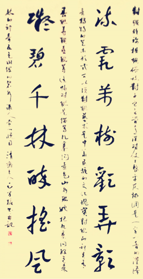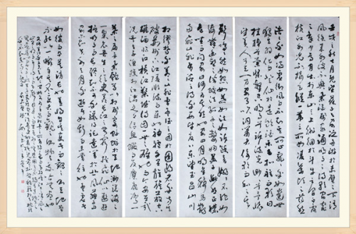 毛学校老师就是一位深耕书法领域的著名艺术家,一生把书法看作生命的流衍,在书法艺苑中,耕耘不缀。在继承传统书艺的同时,刻意追求个性、艺术性、欣赏性和时代感,把多种书体融于自己的作品中,进入了草、行、楷皆精的境界。初见毛学校老师,给人印象最深刻的是他是一位孜孜不倦的艺术实践者和开拓者。其创作范围非常广泛,艺术风格十分独特。