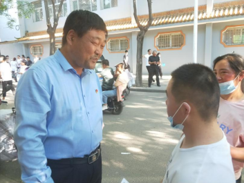 ![]() 图为刘凯瑞在考场外等候。 ![]() 图为校长苗校斌为刘凯瑞整理考试文具袋。 ![]() 图为刘凯瑞在妈妈陪伴下准备进入考场。 为了实现刘凯瑞的这个梦想,屯留三中校长苗校斌主动与区教育局取得联系,多次奔走,为孩子参加中考搭建渠道。 ![]() 图为刘凯瑞走进考场。 ![]() 图为刘凯瑞向老师汇报考试情况。 |