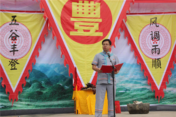 2021年广西环江•毛南族分龙节暨第七届世界自然遗产文化旅游节活动现场 张春梅/摄影 系列活动以毛南族国家级非物质文化遗产展演——神秘毛南祈福仪式拉开序幕,毛南语称为“肥套”,是毛南族古老文化的代表。仪式以敬三界公展开,祈求得到护佑。三界公爷是毛南族人最崇拜的一位保护神。仪式的举行,让游客观众欣赏到毛南族古老文化最神秘的一面。