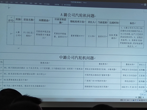 8月13日,由山西潞安化工事业部机电管理部牵头,设备公司组织,成立由化工事业部机电管理部、设备公司和天脊集团三家单位组成的专家组,在山西潞安煤基清洁能源有限责任公司会议室组织召开了机组专题交流会,围绕潞安煤基清洁能源公司现场装置区内的A潞公司CO2压缩机、中潞公司汽轮机的开车运行中出现的各种故障问题,与潞安煤基清洁能源公司机动部负责人和现场设备负责人进行了深度交流研讨。