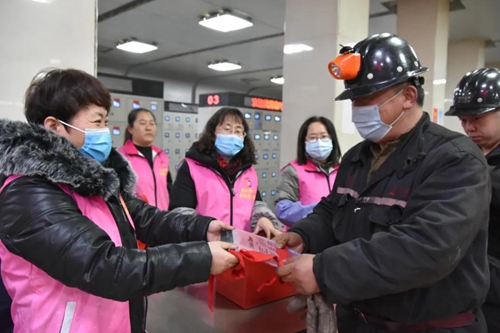 井口复产慰问 送上暖心祝福 时值寒冬,凛冽的寒风无法阻挡漳村女工情系矿工的深情。元旦复产之际,她们深入井口开展了慰问活动,掀起了亲情嘱安全的浓浓氛围。 “矿工师傅们,新年好呀,来抽选一份新年祝福,我们都有礼品相送!”“世间美好与你环环相扣,这个祝福语真好!”“恭喜你师傅,你抽中了一份大奖!希望新的一年平平安安,万事如意!”“谢谢,每次过节都能收到你们的祝福,太感谢了。” “李队长,最近咱们队里的王小强上班还正常吗?”“放心吧!有你们的支持与关注,弟兄们一定好好上班。今天是我们队的第一个8点班,大家都准时准点。”“祝大家工作顺利!” 伴随着一声声亲切的问候和祝福,一份份大礼包送到了上下井职工的手中,漳村女工用贴心的服务和温馨的祝福督促职工们坚定信心、扎实工作,以崭新的姿态投入到新一年的工作中,为矿山的安全生产保驾护航。