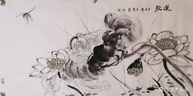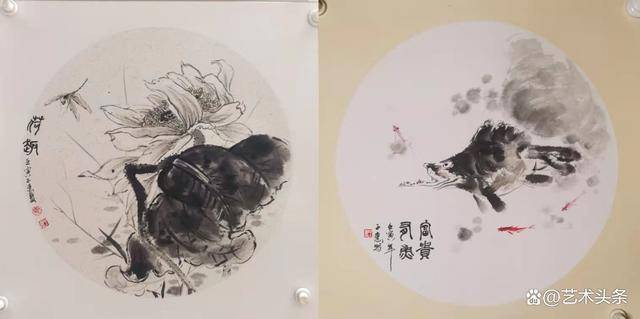 左:《荷趣》(50cmx50cm)作者:秦子惠
