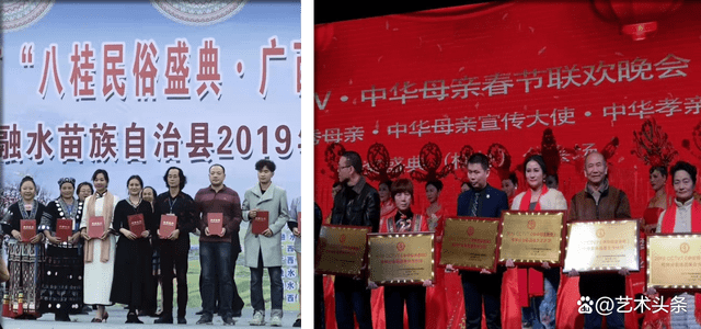 (左)金奖颁奖现场。 (右)CCTV7中华母亲春晚书画