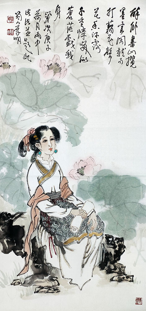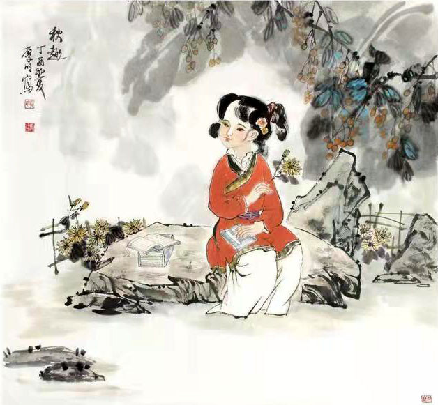 周厚明作品 写意人物把主观的审美意念与客观物象相融合;“以形写神”并以独特的方式在画面上意趣表达。作为学者型的书画家,周厚明先生其艺术特点在于能够用水墨笔调把人物的形,韵,神融为一体的和谐;以朴素平实的艺术语言,述说着生动形象和笔墨意趣,使作品意境幽远,余音袅袅,散发出清奇淡雅的魅力,洋溢着生命的活力与内在的气韵之美。在他的笔下,每个人都有自己独特的相貌特征和性格禀赋,荡漾着浓郁的生活气息,保持简约、厚重、灵动、大方的整体感和高品位。对人物神情、形态、精神的点化极为精微细致、干净明快;结构工致细腻,造型准确优美,动静结合的韵律中,实现了整体的清新幽雅,创作出一系列展现东方文化的典雅之美。周厚明先生用平和的线条勾勒出画面开合有度的造型,用温润的色调营造意境,方圆结合,虚实相间,笔墨的浓淡干枯使画面更显层次感。他以形象的语言表现出唯美的意境,神情中又赋予了饱满的心绪。其笔法与墨色的相互渗透,最终带给作品的是画面与心境的完美呈现,通过这些情感特质提炼出高雅而深远的境界,让人们看到的是充满温情的平和景象,形成独树一帜的个人艺术风格。
