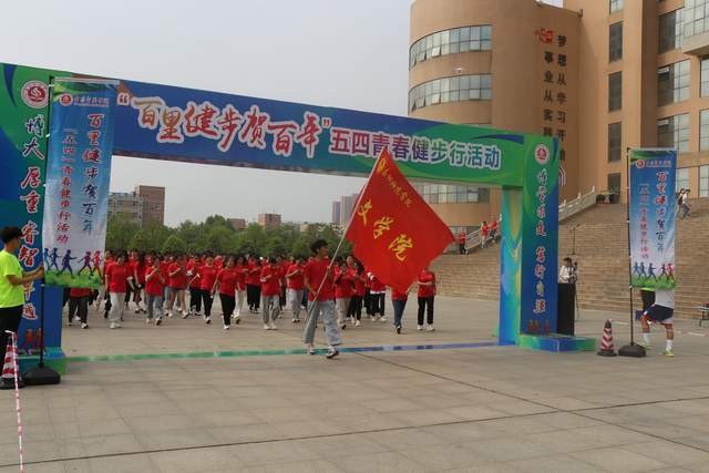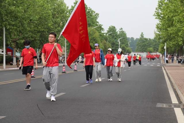 【“百里健步贺百年”】 “砰——”随着一声清脆的发令枪响,身着红色统一服装的健步行队伍出发了。4月24日上午,来自南阳师范学院21个学院的1000名学生参与了“百里健步贺百年”五四青年健步行活动。他们迈着矫健的步伐,精神抖擞、你追我赶、奋勇争先,完成了全部5.5公里的路程,展现出青年学子青春朝气、激昂奋进的精神风貌。