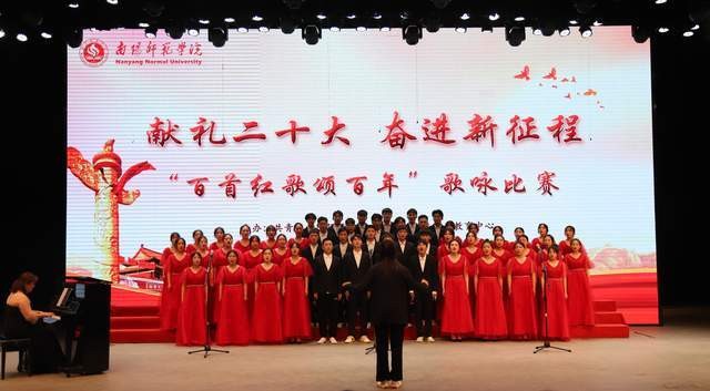【“百首红歌颂百年”】 “光荣啊,中国共青团!”嘹亮的团歌一次次在音乐厅响起。4月27日,由南阳师范学院各学院组成的合唱队伍昂首挺胸,英姿飒爽,歌声嘹亮,用一首首红歌表达“卧龙学子”对党的敬仰、对国家的热爱。《太行山上》、《映山红》、《东方之珠》、《天路》、《万疆》……他们声音嘹亮,节奏准确,感情饱满,歌唱着耳熟能详的经典红歌,赢得了台下观众经久不息的掌声和线上5.2万余人次的观看、点赞。