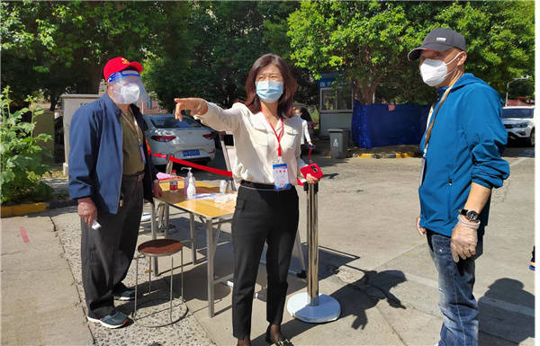 请大家主动出示健康码、行程码、排成4列、登记信息、前往采样点……第一个接受核酸采样的居民洪兵笑着说,“我早上5点钟就来帮助社区和物业人员搭建检测遮阳棚,拉核酸检测警戒线,放置桌椅等,然后排队静候医护人员为我们做核酸检测。我们全家人都积极响应政府和社区号召,全家人都一个不落地做了每一轮核酸检测,只有这样我们才能安心、放心,也是对家人和社会负责。”在现场,我们还能看见一些志愿者的身影:如社区居民沙立萍、周建德夫妇,他们夫妻两都是共产党员,他两在社区微信群和居民楼栋群里推送的全员核酸检测的通知后,3号晚上,该夫妇就主动与社区干部邓蓉联系,主动请缨参与到核酸检测志愿者服务工作中,一直和社区工作组的同志对接,挨门逐户上门通知居民宣传动员到深夜,今天他们又顾不上休息,便早早地来到社区党群服务中心,穿上志愿者马甲,拉起护栏杆线,认真协助社区干部做好每一项现场准备工作,按照人员安全间隔距离引导广大居民有序排队,耐心解答居民释疑解惑。沙立萍说:“我们作为共产党员,在人民群众需要我们时刻,我们就该初心不忘挺身而出,全力呵护百姓生命健康与安全。”