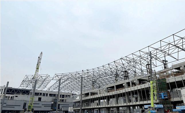 为保证项目主体结构关键节点,机电安装两班倒,保证工作前置;二次结构方面,为应对工期紧任务重的情况, 项目部生产团队积极行动,倒排工期,分解并锁死各专业节点目标,穿插施工。技术团队通力协作,编制技术方案做技术交底,商务团队与物资团队提前做好各项招标采购工作,协调好各方资源,攻坚克难。截至当前,标准展厅二次结构完成70%,幕墙完成50%,金属屋面避水工作正在展开;多功能厅主体完成100%,钢结构完成30%幕墙完成20%;会议中心地下室完成90%,钢柱吊装完成80%;第一接待中心主楼完成至10楼,附楼地下室完成100%;游客中心地下室完成100%。