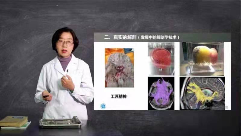 许浩然是大一正在上解剖课的同学,他说:你永远想不到刘老师下节课会用什么方式让你来参与学习,“你来比划我来猜”。“人体器官成语对抗赛”“让你的骨头各按其位” “解剖学微故事”,“现代的话题,头脑风暴”......有一次运动系统实验课,她设计了课堂比赛平板支撑,输了的小组第二天报告俯卧撑相关肌肉的起止点和功能,她亲自下场和女同学比赛,50岁的她竟然完胜,她借机让同学们既要学习又要运动,启发根据肌肉疼痛的部位推断参与平板支撑的肌肉,输了的小组同学心服口服认真准备报告。 石铭倩大二同学,已经进入临床专业课学习,她还特别关注刘老师的课堂话题,当她听说刘老师要带学生直播讨论“夫妻为什么越长越像”,特意跑过来进直播间听课。她说:从这一个话题刘老师引发出来镜像反应,表情模仿、神经社会模式的等许多神经脑科学问题,都是书本上没有,开阔了我的眼界,刘老师的学识太让我佩服了。我们很少听到这样的课,所以我经常回来蹭课。 刘老师全身透着热爱——爱医学、爱教学,更爱学生。有的学生毕业后工作。恋爱结婚甚至人生规划都还来找刘老师。 四度春风化绸缪,几番秋雨洗鸿沟。黑发积霜织日月,解剖无言写春秋是刘教授的真实写照。 |