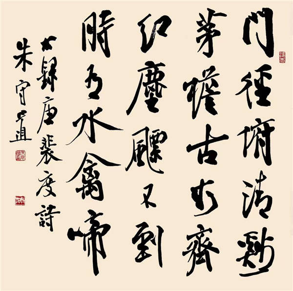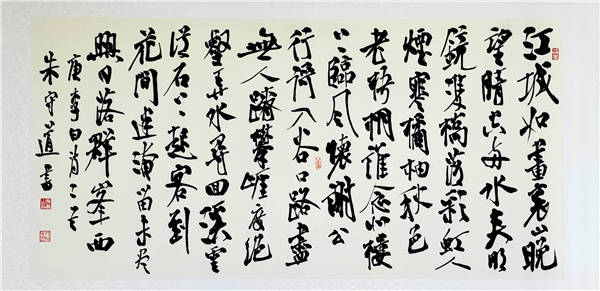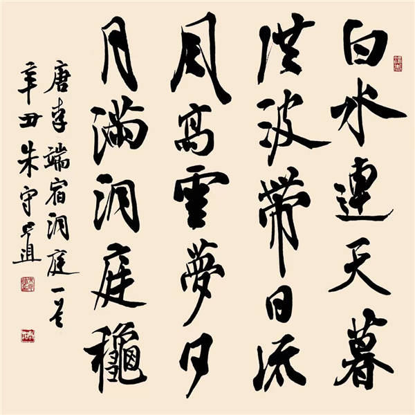 经过笔墨点墨的对立统一,审美的对立统一,然后,再回归和谐的中庸境界。客观地说,这种艺术追求与思想历程,某种程度上讲,其实,就是向上一路,千圣不传的中国书法境界,也是佛之所谓哲学境界。我观朱兄守道的书法艺术,就如同朱兄之名讳,守道大同乃中庸,有大儒之风尚,秉浩然之正气,沁人之心脾,焕然浩荡之中国精神 |