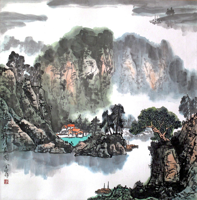 江村清夏图(69x68cm)作于2011年 出版有《当代名家画集-方金炉》、《中国当代绘画名家-方金炉画集》等个人画集十多种;入典《中国人物志》、《中华人物大典》、《文联艺术大家》、《传世经典、大师风范》等数十种。 获“国家文化艺术奖”,“中国艺术终身成就奖”、“中国艺术特别成就奖”、“中国文学艺术界学术奖”、:“中国文化学者奖”等。