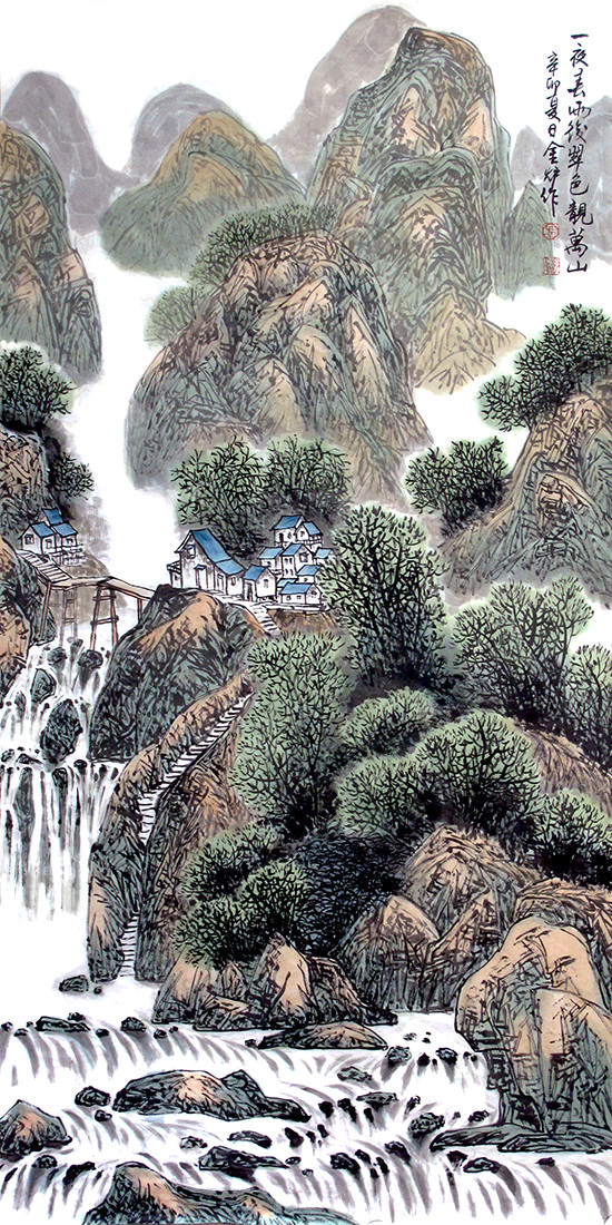 一夜春雨后,翠色靓万山(138x69cm)作于2011年