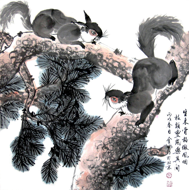 生来骨格傲风烟、枝头灵鼠乐其间(68x68cm)作于2006年 ![]() |