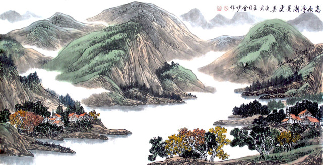 高原静湖景更美(68x1361m)作于2011年 方金炉的画作从立意到笔墨表现有着鲜明的特点,山水、花鸟以景寄情、借物寓意。以工笔和写意相间的笔触与水墨色彩突出表现的物象,将画面注入了现代形态,构成了既有传统,又富有强烈时代气息的艺术风貌,予人以鲜明的视觉效果。可以看出,方金炉的作品强调艺术性和创造性,重心灵描写及内在的神韵,笔墨简练、生动,形神兼备,所追求的是生机灵动、逼肖传神;作品中所展现的空间层次,丰厚而富变化,利用洒脱与豪情的表现形式,以及精致与典雅的绘画技能表达“心境”的诉说。这一特定的情感符号作为作品中的表现线索,使得作品在体现朦胧、空灵、宁静、悠远与苍茫的美感,有了难得的“语境”,这种表现让画作形象超越自然形态而成为表达自己情感的依托,凸显了当代意识的表达。方金炉对传统与当代文化语言的深刻认知,拓宽了他的视野,用时代的审美观去描绘自然;用民族的人文精神去感悟人生,并将高山大川、花鸟意趣,人文景观纳入自己特定的心境之中,可谓匠心独运。