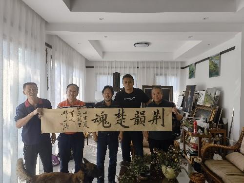 后于五哥家题签丶留照丶交谈,睹迹红联金字,签书画篆刻邮册,颂米寿之耄耋,冀期颐之遐龄。吾来筑城故地重游,或赠书画,或馈拙著,芹献之举,感念之至。