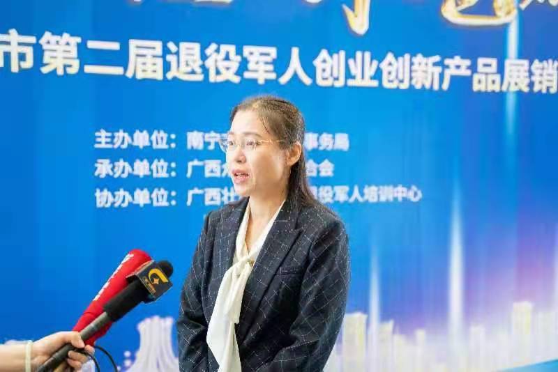 5月12日,以“戎归八桂、创业邕城”为主题的2022年南宁市第二届退役军人创业创新产品展销会正式启动。当天上午,本次展销会的媒体吹风会在广西退役军人培训中心召开。会上,南宁市退役军人事务局副局长李勤重点介绍了南宁市退役军人创业就业基本情况及取得成果,南宁市退役军人事务局就业创业科科长黄巧燕做了相关工作的汇报。