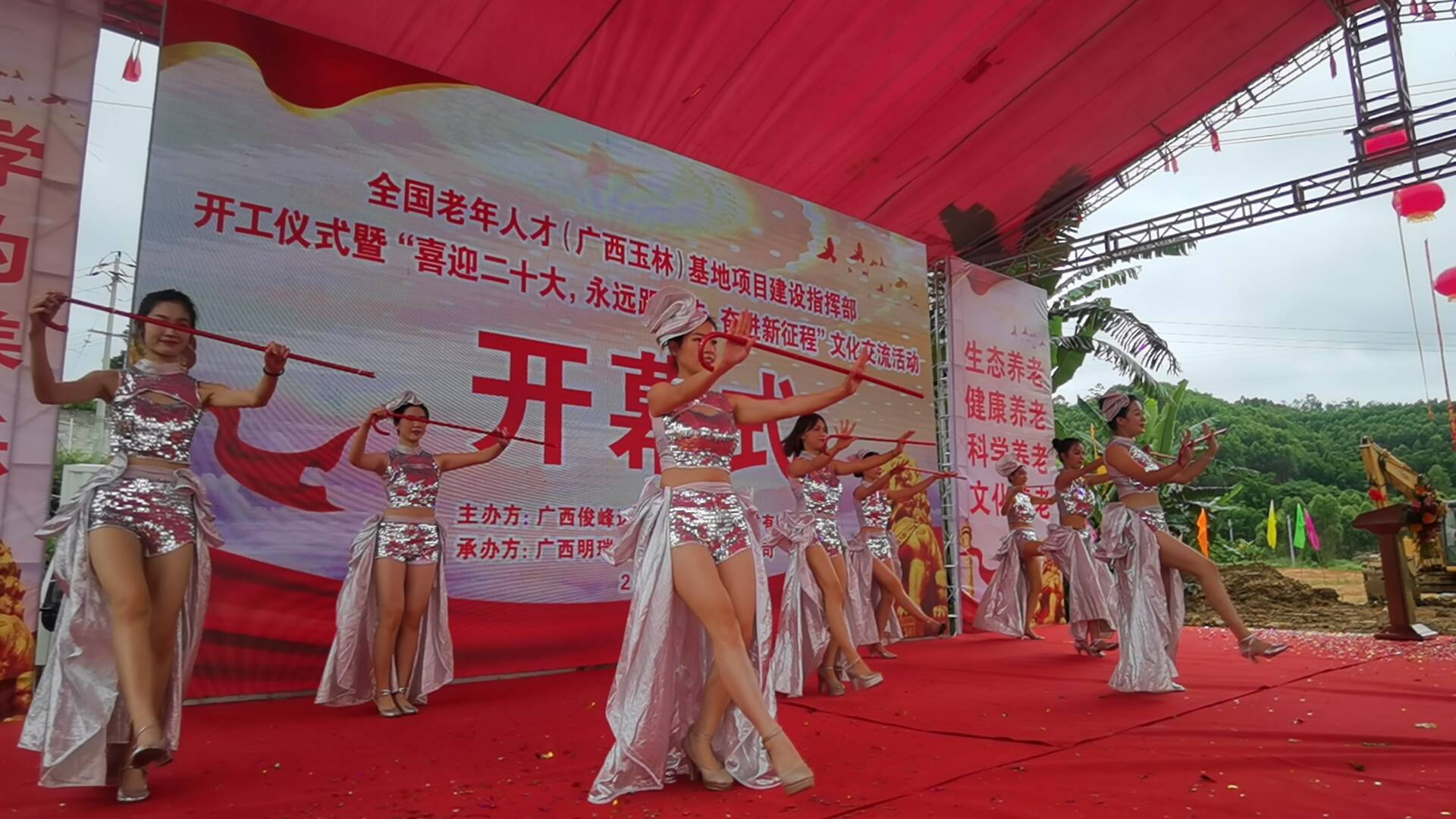 广西明瑞文化旅游开发有限公司江峰董事长向嘉宾、朋友们简要概括了全国老年人才(广西玉林)基地的内容,对该项目落户北流市清湾镇平旦村表示热烈祝贺和殷切期望,最后该公司韦建球经理郑重宣布全国老年人才(广西玉林)基地开工,现场顿时鼓乐喧天、礼花齐放。开幕式期间,还有简短的歌舞表演,主持人用嘹亮的歌声以及演员们蹁跹的舞姿为本次活动的成功举办增光添彩,也赢得了宾朋们的热烈掌声。