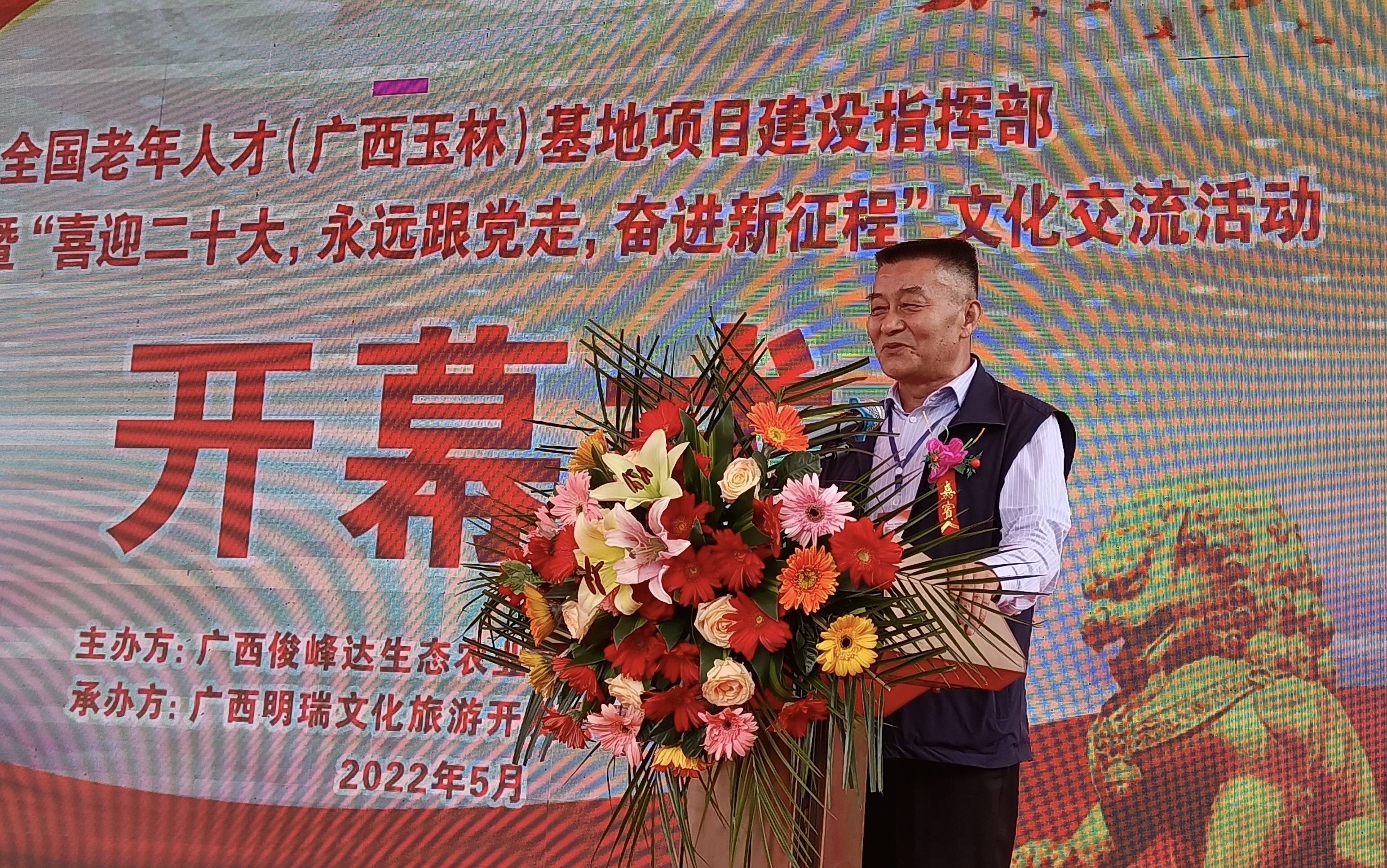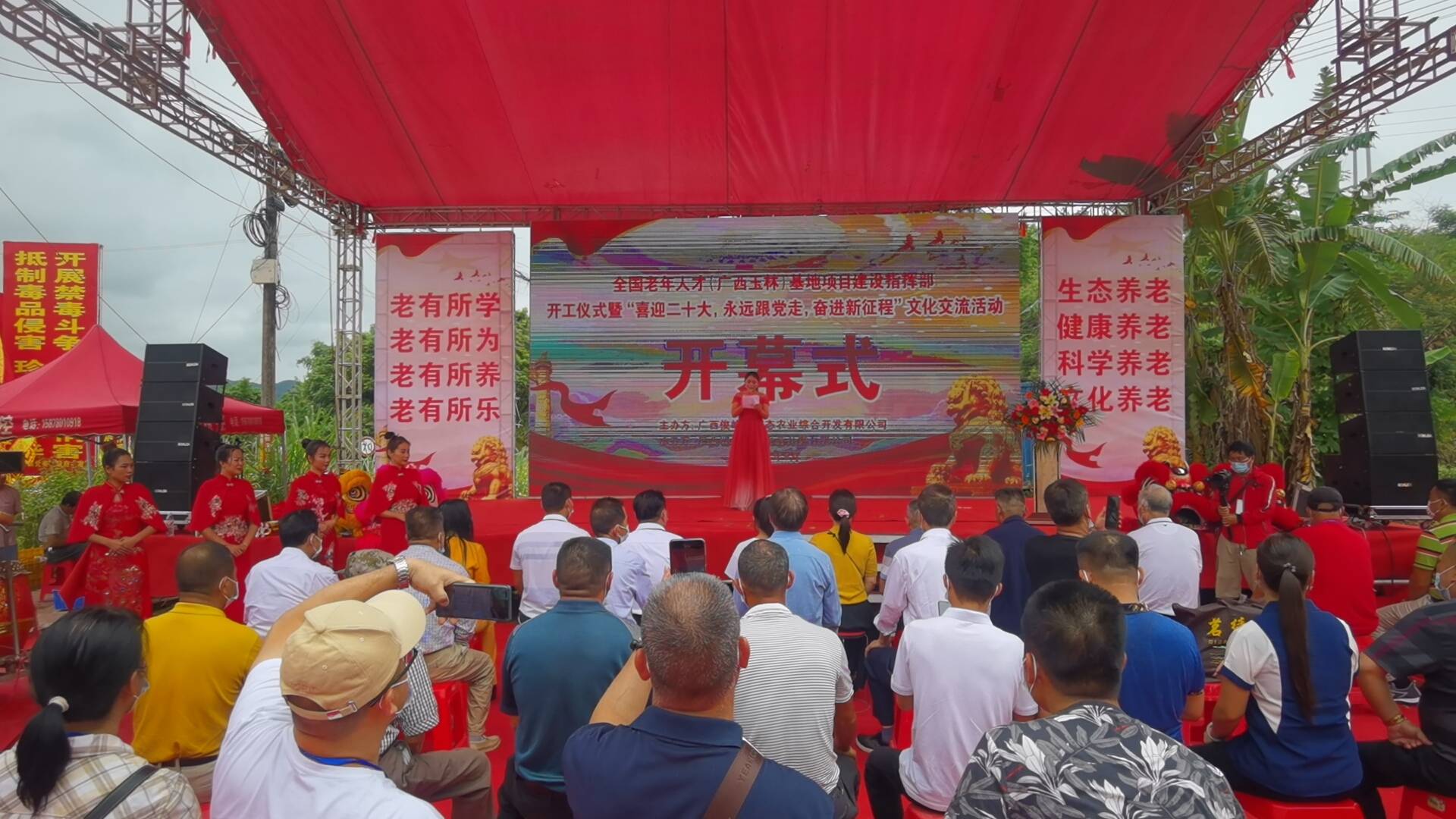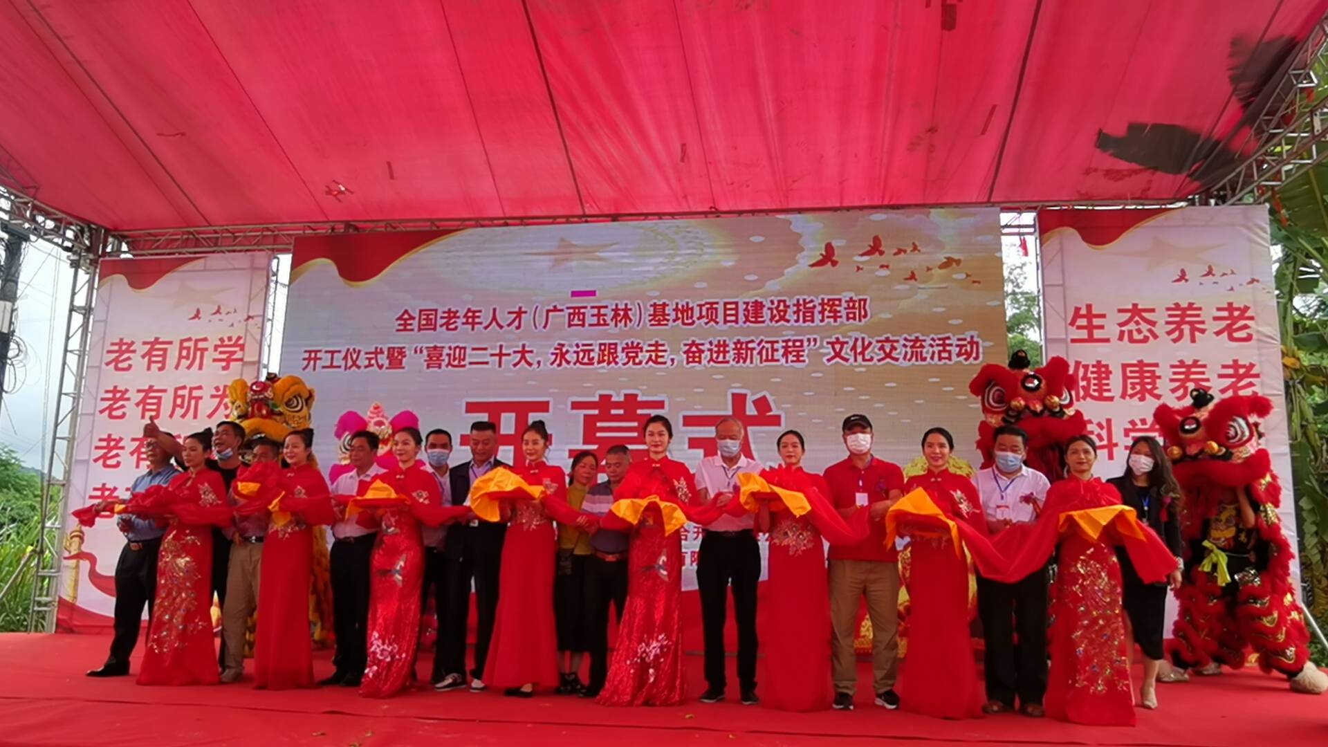 为积极应对人口老龄化发展、加快推进老龄事业发展助力国家老龄事业持续发展,5月14日,全国老年人才(广西玉林)基地建设指挥部开工仪式暨“喜迎二十大,永远跟党走,奋进新征程”文化交流活动在北流市清湾镇平旦村一家人花园盛装启幕,广西明瑞文化旅游开发有限公司领导、原全国老龄委刘俊岩先生以及特邀嘉宾们参加了开幕式活动。