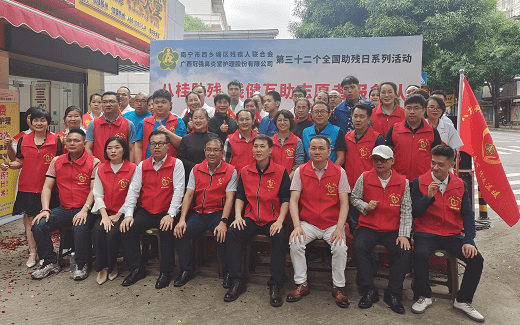 “八桂助残,残健互助志愿者服务队”的授旗仪式暨助残活动启动仪式现场 据介绍,今年的“八桂助残 残健互助”活动主题,力所能及为残疾人提供就业帮扶、康复救助、法律援助、结对帮扶等服务,切实增强广大残疾人的获得感、安全感和满意度。公司执行总裁何初荣女士代表公司全体员工对自治区残联各级领导的信任表示感谢,并承诺我们将以此为动力,不遗余力地为残疾社群及社会大众健康做出应有的贡献。冠强鼻炎堂也将带头倡议并拿出专项款项组建残健互助企业联盟,同时也呼吁社会各界积极投入扶残助残事业,积极扛起帮扶残疾人的工作责任、社会责任,发挥自身优势,广泛动员本企业积极参与到扶残助残行动上来,把残健互助工作推向新高度。希望社会各界进⼀步发扬理解、尊重、关⼼、帮助残疾⼈的良好风尚,⼴泛开展⾏之有效的献爱⼼送温暖活动,⼈⼈动⼿,个个关⼼,让这份爱永远传递下去。