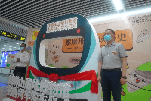 2022年“5.18国际博物馆日”的主题是“博物馆的力量”,为加深公众对博物馆的了解与认同,更好地发挥博物馆的社会功能,南宁市顶蛳山遗址博物馆于5月17日上午在南宁地铁三号线总部基地站内举行主题专列发车仪式。一辆顶蛳山遗址博物馆文化专列从该站首发,此后一个月,这辆主题列车将向公众普及博物馆知识、传播顶蛳山历史文化。