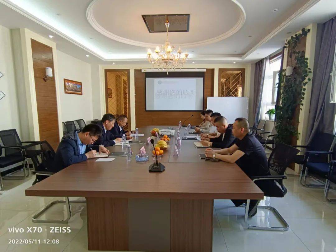 新疆新强线缆有限公司董事长李义乐对自治区政府政研室一行领导深入企业,了解实际情况,倾听心声、诉求表示感谢,并向政研室领导详细介绍企业基本情况,汇报产品生产原理、技术先进性、产品推广现状及市场前景等,与政研室领导交换了意见。