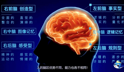 2、认知能力水平取决于大脑对各种外界输入信息的加工方式和处理能力 我们知道,人脑接受外界输入的信息,经过大脑的加工和处理,转换成内在的心理活动,进而支配人的行为,这个过程就是信息加工的过程,也就是人脑的认知过程。 那么究竟有哪些因素会影响人脑的信息加工过程呢? 人脑的操作系统跟电脑的操作系统很相似, 人的左脑是事实型和规则型的脑,基本的思维特点是重事实和细节,主要负责逻辑分析和计划、实施和动手的能力,反映人的知识智慧和经验智慧; 人的右脑是创造型和感受型的脑,基本的思维特点是融会贯通和重感觉,主要负责把握整体,反映创造智慧和直觉能力,以及人际交往与躯体感觉,反映创造智慧、直觉能力和感觉智慧; 人脑同样拥有对信息分辨储存的记忆能力, 左脑负责数字、文字和逻辑信息的记忆,右脑负责情感、场景和形象信息的记忆;