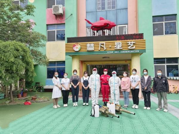 2022年5月19日,枭狼志愿者在队长李成的带领下开着装备齐全的越野车,带上全备的消杀器械,来到在疫情结束后即将开学的新西方、星艺幼儿园对全园无死角的全部消杀。在他们团队的辛勤工作后,两所幼儿园已经安全的迎接小朋友们的到来。