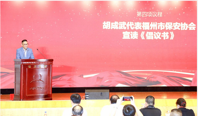 胡成武代表福州市保安协会宣读《倡议书》