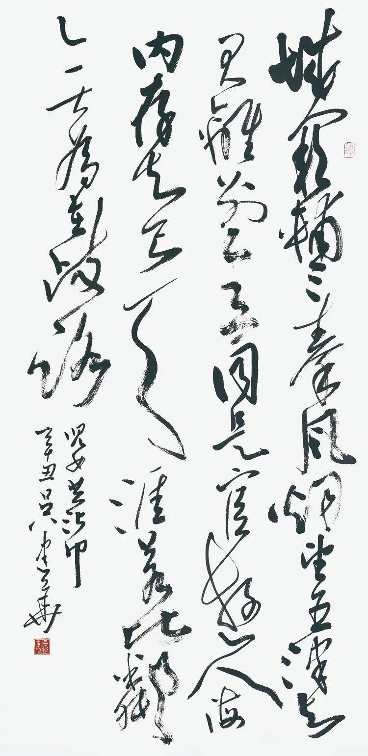 在书法创作的道路上,建华有欢乐、有痛苦、有执著、有彷徨,那灵动的点线,有时似水,有时像火,让他慨叹生命之轻。