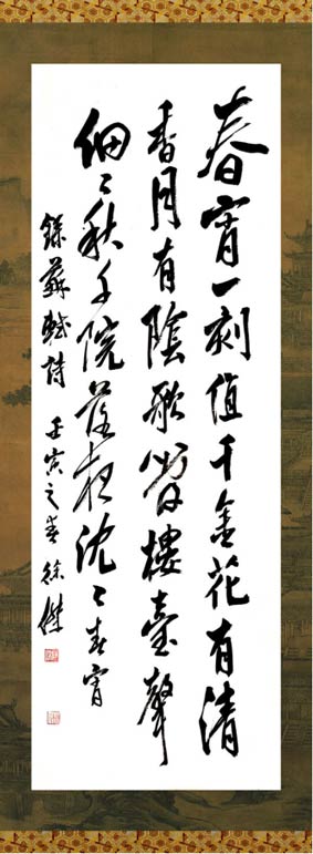 他从事书法创作数十年,从来不惑于物质不惑于名利,不困于人生五味,他以澄澈之怀人文之情的器识涵养笔墨。他书法作品的格调、线条的线性与线质,以及书写的词句内容融合一致地透出他的人文情怀、人文关怀、人文精神。