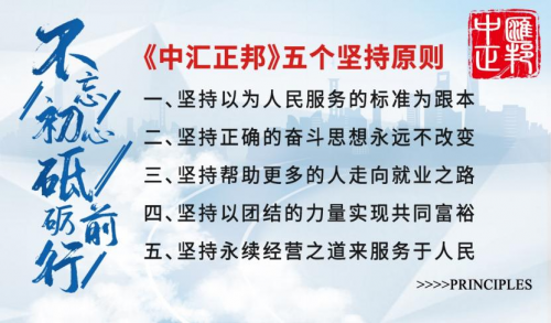 中汇正邦不忘初心牢记使命,坚持以为人民服务的标准为根本,坚持正确的奋斗思想永不改变,坚持帮助更多的人走向就业之路,坚持以团结的力量实现共同富裕,坚持永续经营之道来服务于人民。
