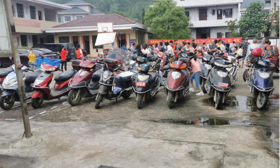为进一步增强村民对摩托车、电动 车驾乘的交通意识,切实减少因未戴头盔引发的交通安全事 故,有效提升人民群众交通出行安全防护水平。2022年6月 22日,镇人大主席、派出所、草塘村村支两委及民营经济企 业--凰腾集团在草塘村委会开展‘一盔一带’交通安全宣传”, 免费赠送头盔活动。