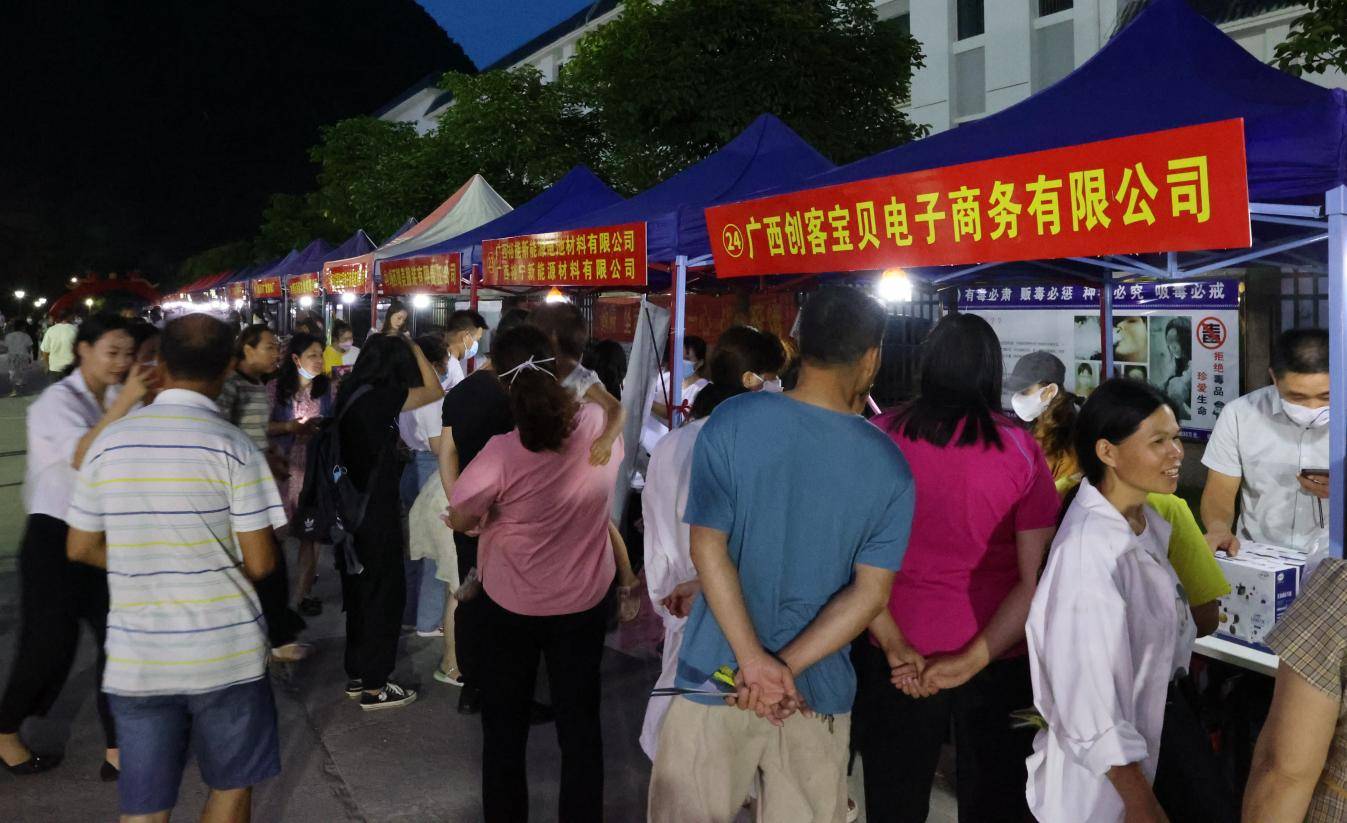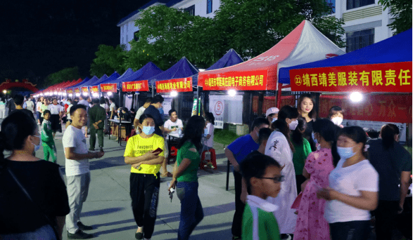 2022年6月23日19时,由广西壮族自治区就业服务中心主办、靖西市人力资源和社会保障局承办、靖西市实施乡村振兴战略指挥部就业和社会保障专责组成员单位、各乡(镇)人民政府协办的“2022年脱贫人口就业帮扶攻坚行动专场招聘活动”在靖西市易地搬迁安置点‘靖西老乡家园’隆重举行。