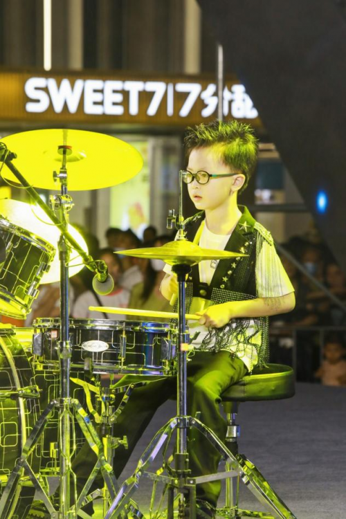 小小的年纪就有大大的能量第一次登台就镇定自若的为大家表演了精彩的架子鼓表演。