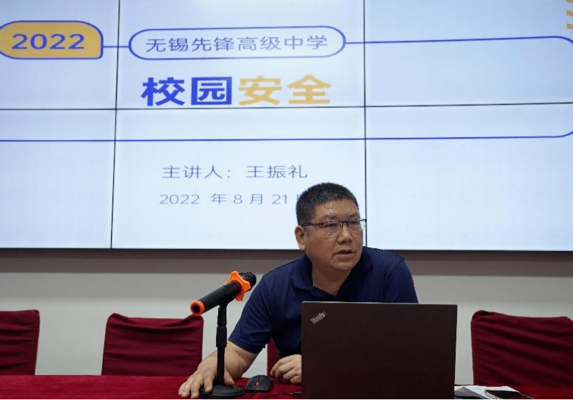 无锡先锋高级中学总务副校长王振礼为大家讲述了校园安全的主题讲座,我们要重视疫情防控,严防流感等五大感染疾病。学校安全关系到社会稳定、家庭幸福,是建设健康和谐的重要工作,我们要提高安全意识、安全防范能力和自我保护能力。